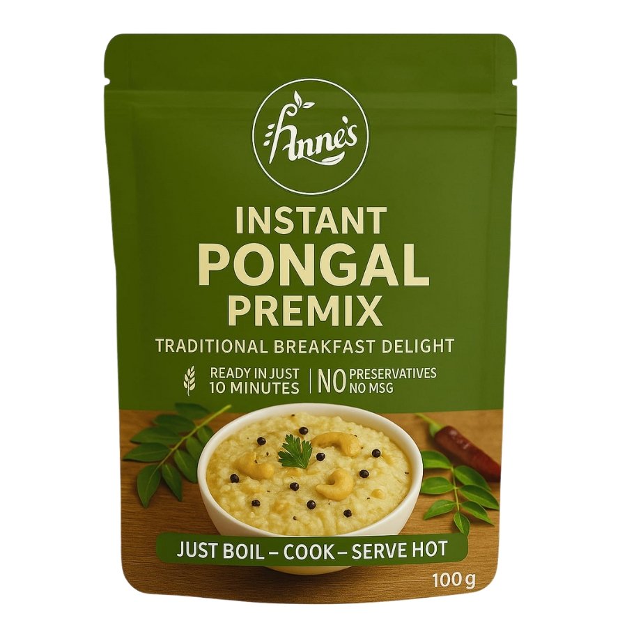 Annes Pongal Premix brings you the authentic taste of South India in minutes. Made with premium quality rice, moong dal, pure ghee, and aromatic spices, this ready-to-cook mix ensures a wholesome, delicious meal every time. Perfect for busy mornings or festive occasions, Annes Pongal Premix captures the essence of traditional homemade Pongal without the hassle. Just add water, cook, and enjoy the warm, comforting flavors that remind you of home. Ideal for health-conscious food lovers, it’s nutritious, convenient, and filled with natural goodness. Bring home Annes Pongal Premix and experience the joy of authentic South Indian comfort food instantly.